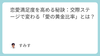 恋愛 恋愛満足度を高める秘訣:交際ステージで変わる「愛の黄金比率」とは?