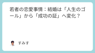 恋愛 若者の恋愛事情:結婚は「人生のゴール」から「成功の証」へ変化?