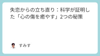 別れを通じて「次の恋愛ではこうしよう」という個人的成長が見られることも、多くの研究で指摘されています。